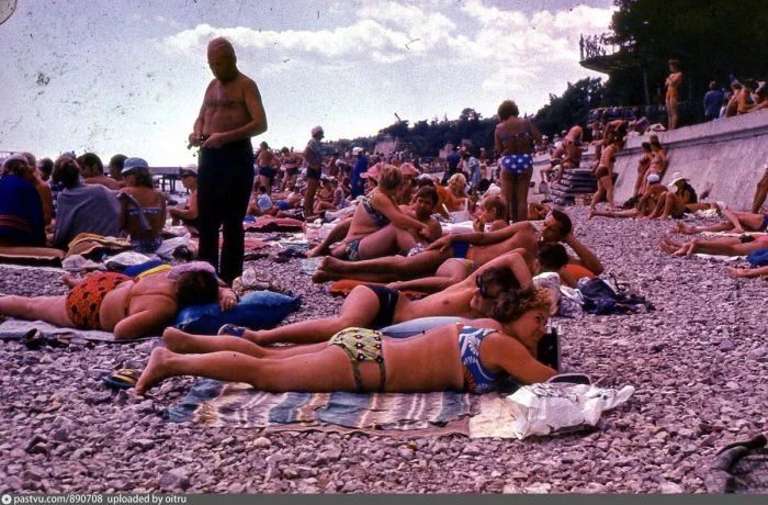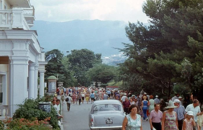 7. Огромное количество отдыхающих около гостиницы "Ореанда" в Ялте.