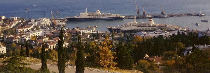 8. Это роскошный вид на ялтинский порт с Холма Славы. У пристани стоят теплоходы Тарас Шевченко и Иван Франко.