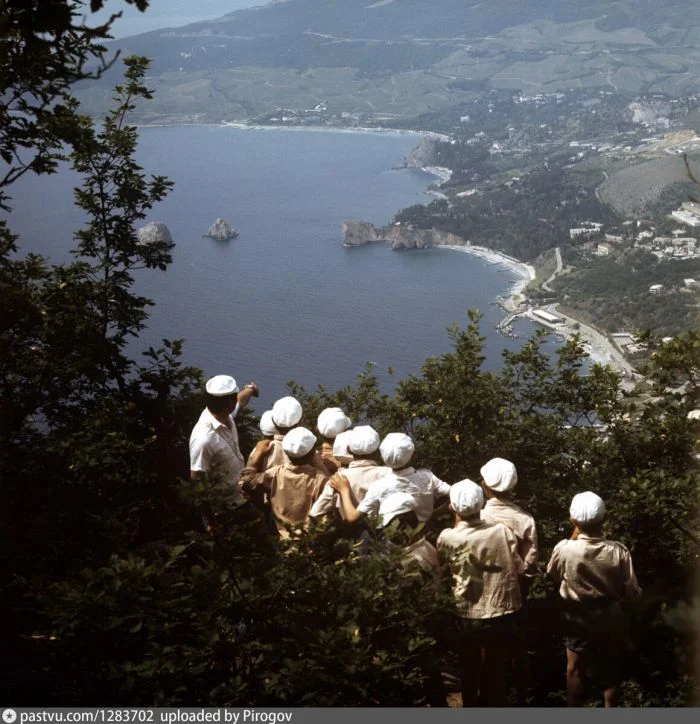 9. А это - снова артековцы. На этот раз они на горе Аю-Даг и смотрят вниз на сам лагерь. Пейзаж невероятный!