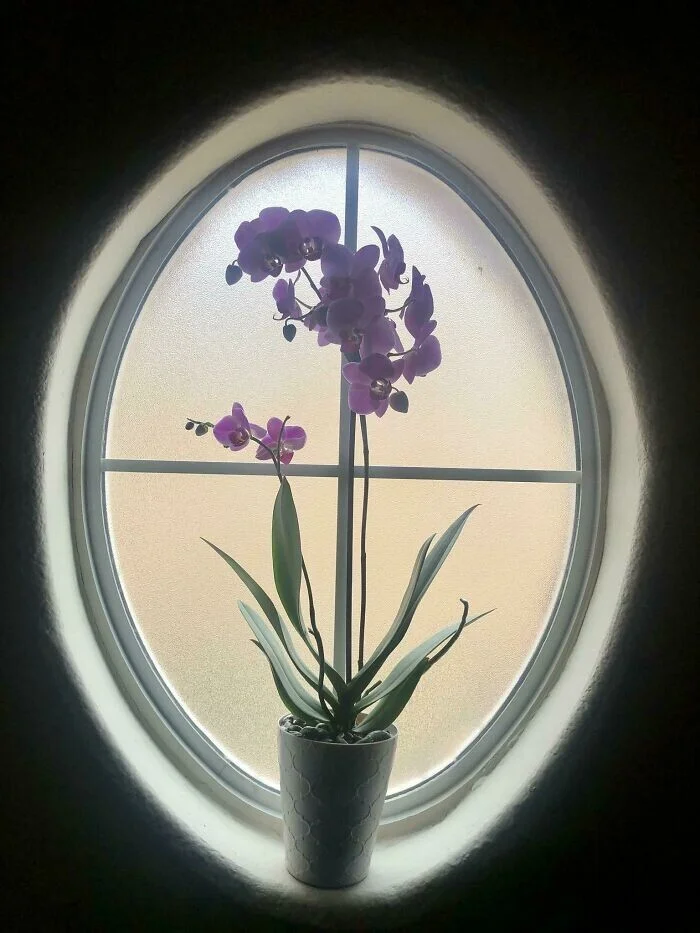 Орхидея, идеально вписавшаяся в окно