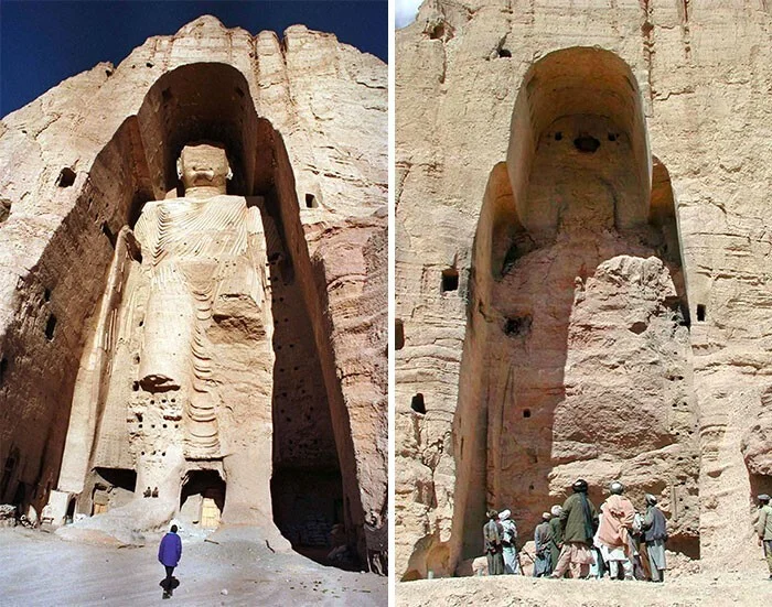 Будды Бамиана, две статуи VI в.н.э., были взорваны и разрушены в марте 2001 года талибами по приказу лидера талибов, муллы Мохаммеда Омара