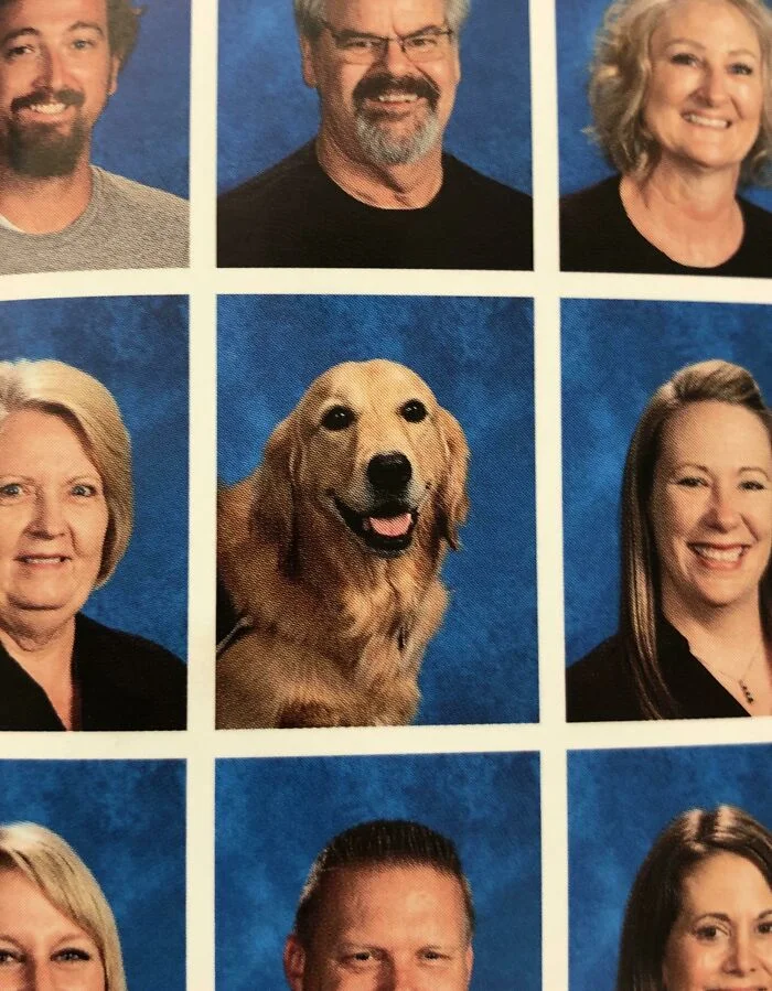 #5 Служебная собака нашей школы, Люси, попала на страницу "Персонал" в ежегоднике