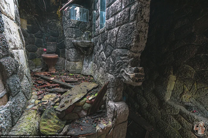 С другой стороны даже туалет в доме, был необычно украшен и вероятно, стоил многих часов ручной работы над его обустройством. К сожалению, из-за времени и пожара, от заброшенного дома остались одни руины и до нашего дня сохранились лишь немного рисунки.