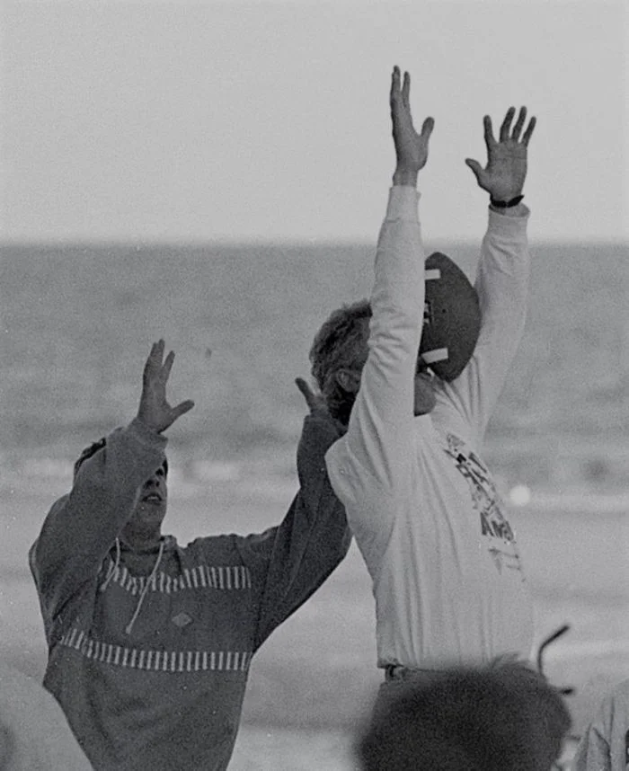 Президент Билл Клинтон упускает мяч во время игры в американский футбол в отеле Hyatt Regency, США, 1993 год