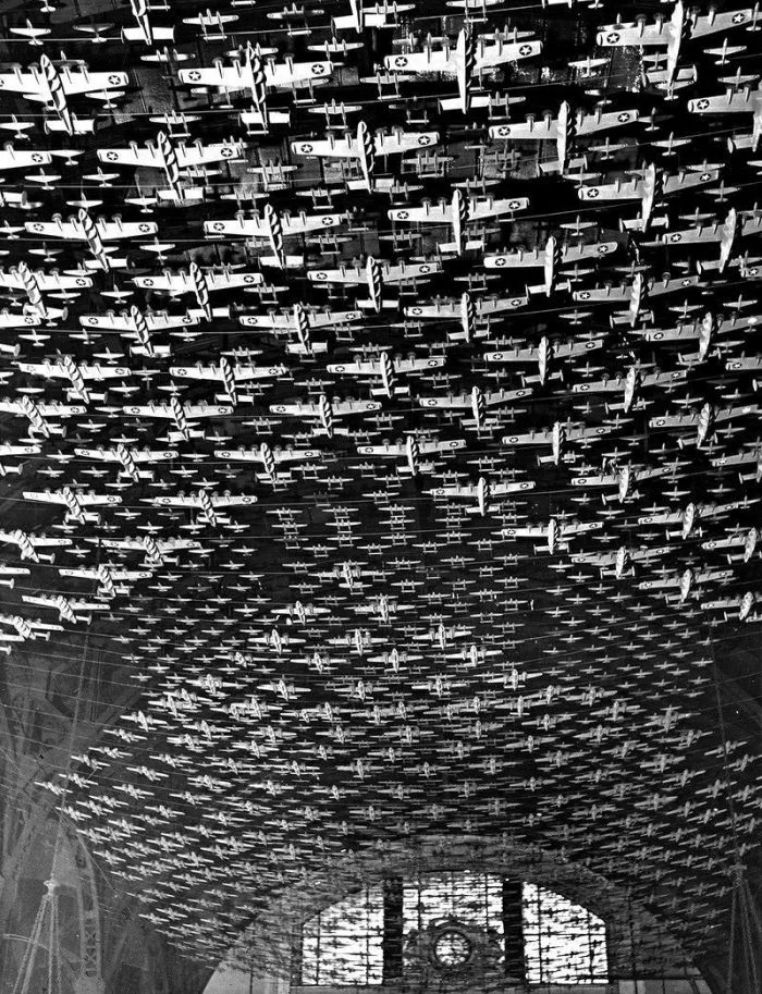 Потолок вокзала в Чикаго, украшенный моделями самолетов, 1943 год