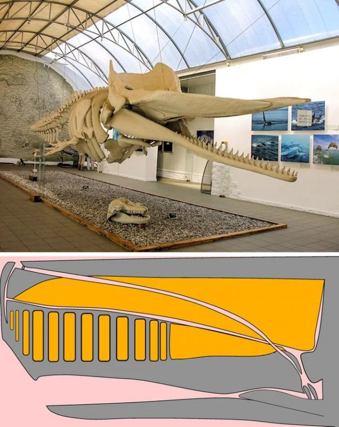 5. У кашалота есть особый орган, спермацетовый мешочек, который находится в своего рода ложе из костей черепа. Мешок становится жидким, что облегчает киту подъем, а при погружении он затвердевает