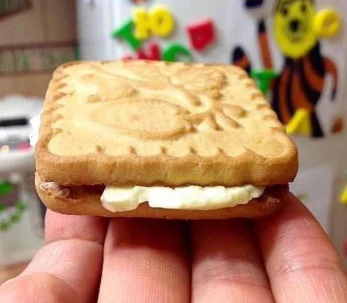 Вкусняшка, как правило, состояла из печенья по типу «Юбилейное» и тонких кусочков сливочного масла. Такое нехитрое блюдо частенько подавалось с молоком в качестве перекуса.
