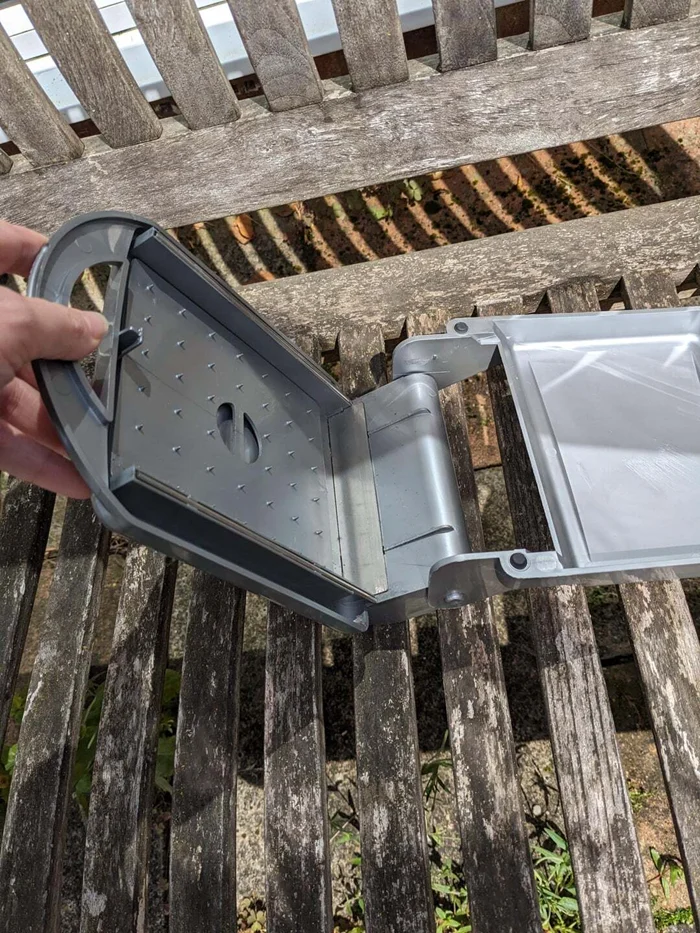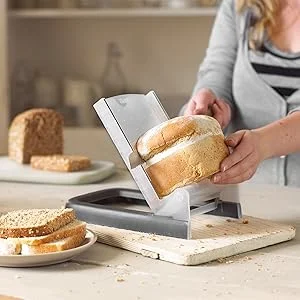 Это нарезалка для хлеба. Логика работы - положил буханку на шипы, она закрепилась, отрезаешь по направляющей ровный ломоть. Реальность - нарезаешь кучу кривых кусков хлеба.