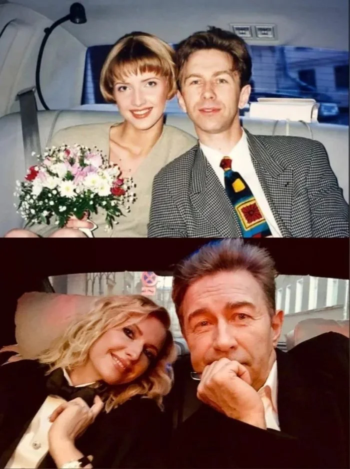 Валерий Сюткин с женой Виолой в день их свадьбы, 17 июня 1994 год и спустя время.