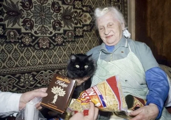 Передача гуманитарной помощи из Германии пенсионерам и инвалидам Москвы, 1991 год.