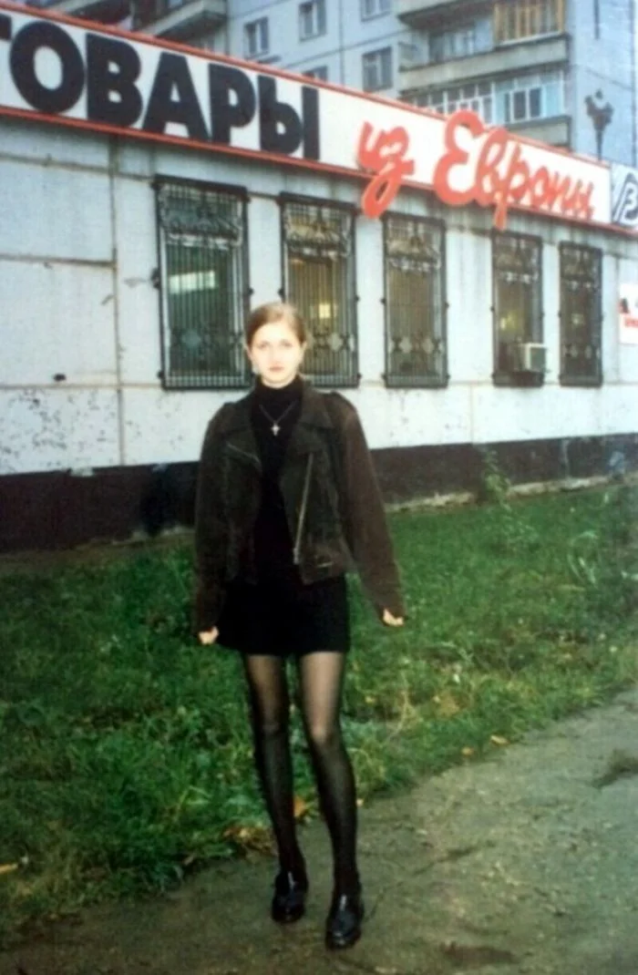 Девушка возле магазина "Товары из Европы"