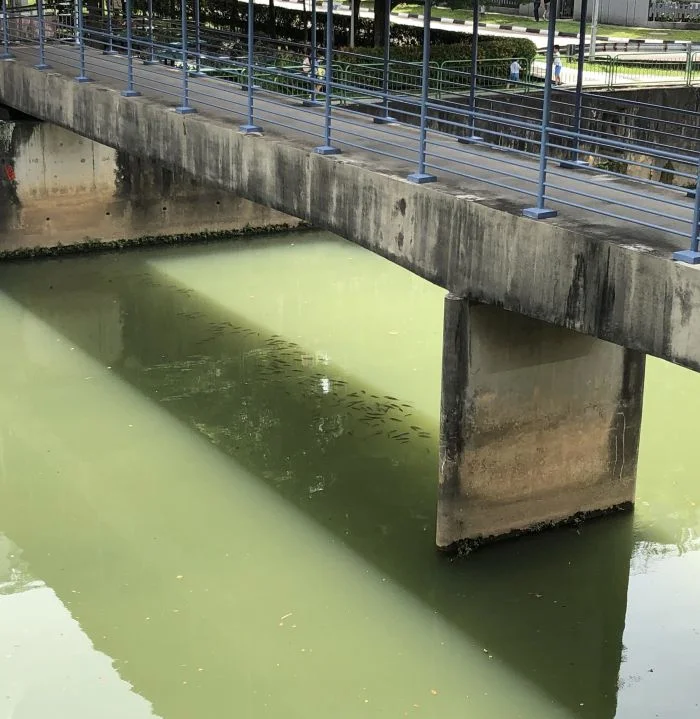 6. Рыбы спрятались от жары в тени моста