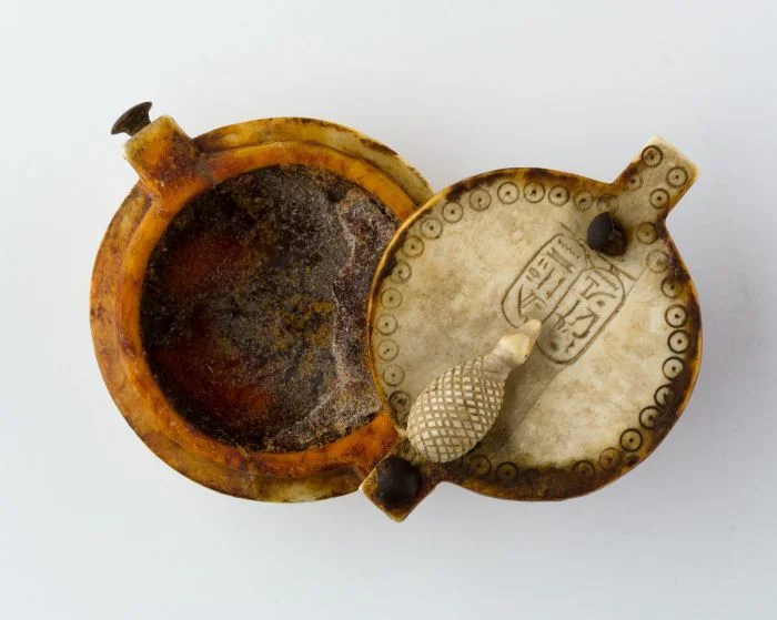Коробочка для благовонных притираний из черного дерева и слоновой кости, принадлежавшая царице Египта Нефертити (1295 - 1186 г. до н.э.)