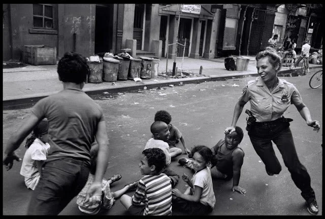 2. Женщина-полицейский, играющая с детьми в Гарлеме, 1978 год