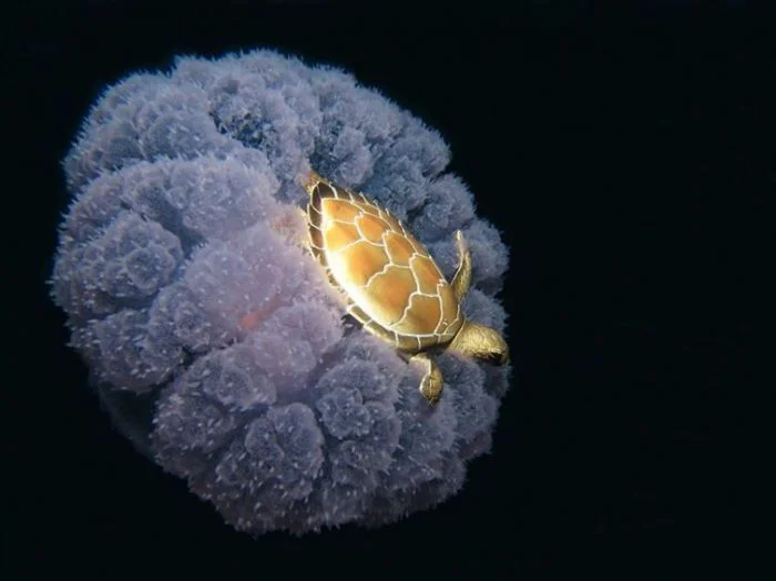 8. Просто черепаха, катающаяся на медузе