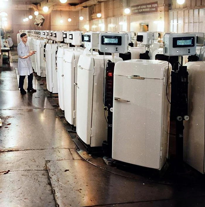 На поточной линии контроля холодильников. ЗИЛовские холодильники стали неотъемлемой частью многих семей и домохозяек той эпохи.