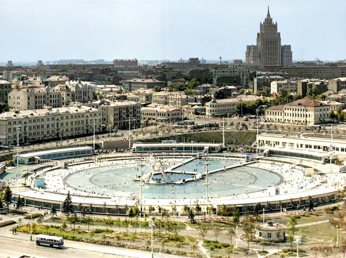 Изначально здесь планировалось строительство Дворца Советов по проекту Б. Иофана и даже были начаты подготовительные работы, но грунт оказался неподходящим для такого огромного сооружения, и проект закрыли.
