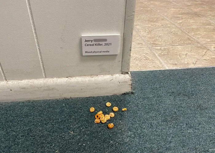 Мой коллега вечно рассыпает сухие завтраки и не убирает за собой. Сегодня я превратил это в современное искусство.