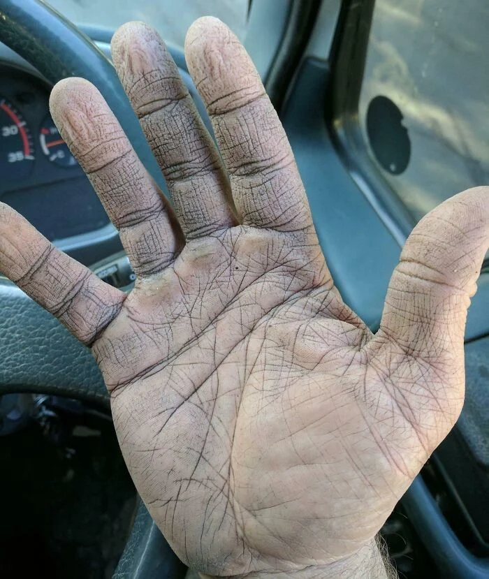 30. "Я перекачиваю бетон, а это моя рука после смены. Пыль очень сушит кожу, поэтому мои руки всегда потрескавшиеся"