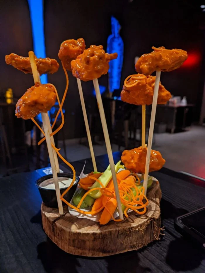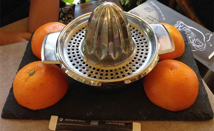 Цитрусовая пенка в ёмкости в виде гипсового слепка ротовой полости шеф-повара. Похоже, что идея подачи позаимствована из какого-то безумного ужастика.