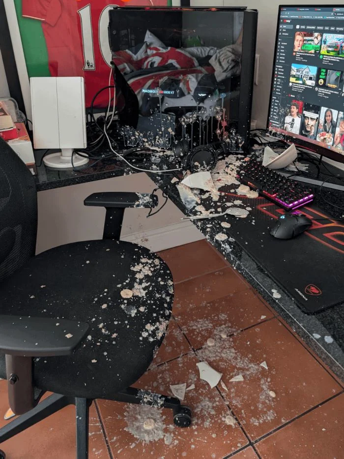 Когда-то подобным образом я убил ноутбук. Я споткнулся, когда нёс большую чашку кофе с молоком. Было трудно поверить в то, как идеально жидкость попала прямо в центр клавиатуры ноутбука. Он издал звук ВАЛЛ-И и умер. Примите мои соболезнования!