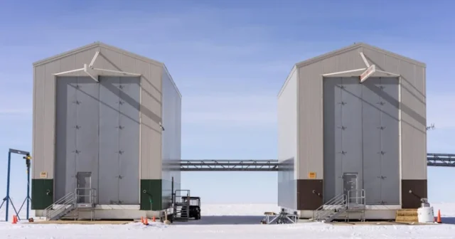 Два одинаковых строения расположены на американской антарктической станции Мак-Мердо. Такие шары используются для длительных полётов (которые измеряются неделями) в научных целях в верхних слоях атмосферы. Кстати, эти здания являются передвижными.