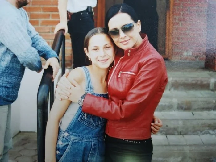 16. Жанна Фриске с маленькой фанаткой во время гастролей группы «Блестящие». Омск, 3 сентября 2000 год
