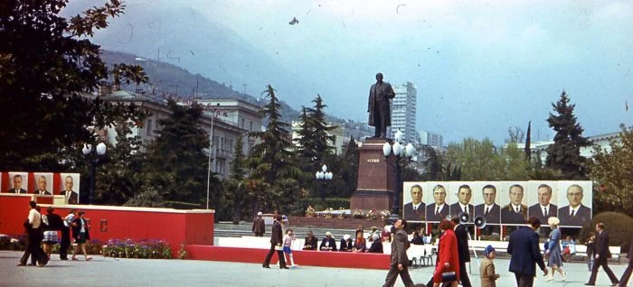 13. Всё та же Ялта, памятник Ленину на набережной и портреты коммунистических деятелей, специально установленные к празднованию Первомая.