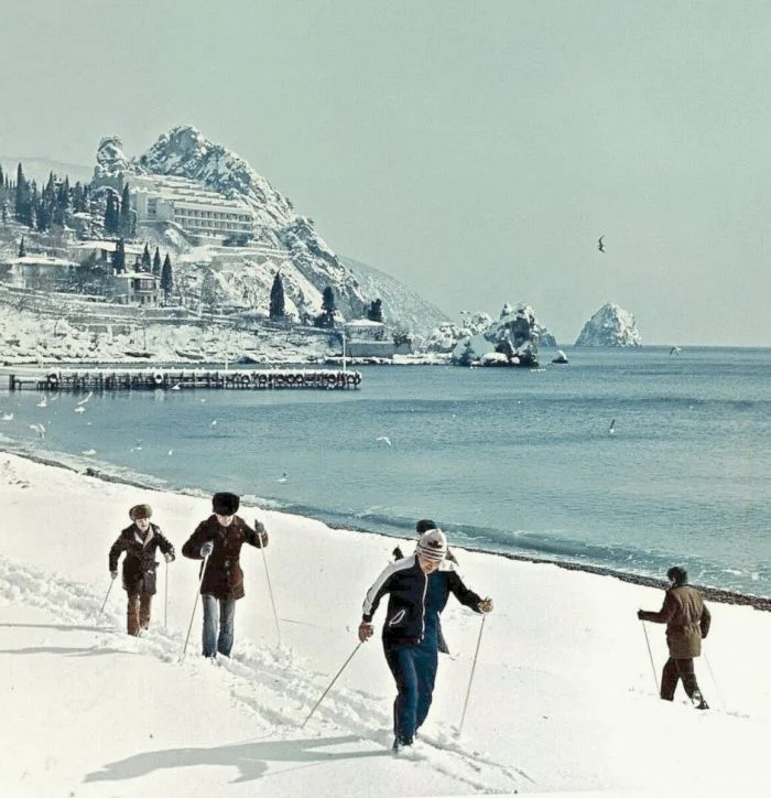 16. Что бывает, если в Крым неожиданно нагрянула зима? Само собой, нужно хватать лыжи и отправляться накатывать лыжню на пляже Гурзуфа!