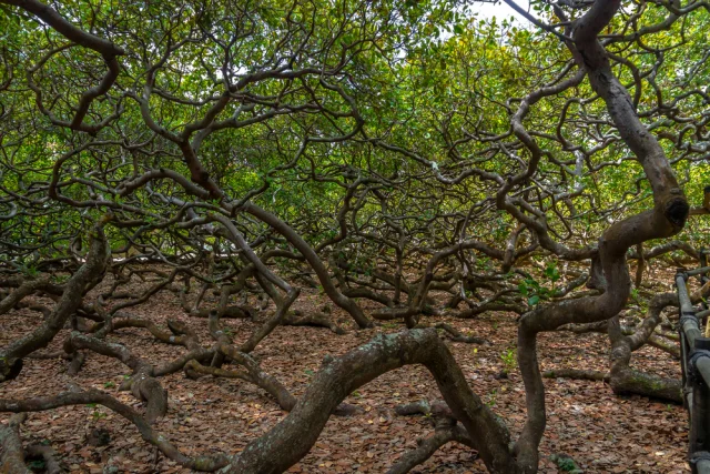 Растение с окружностью 500 м простирается на площади 8400 кв. м. По всей видимости, его размеры обусловлены генетической аномалией, ввиду чего ветки начали расти не вверх, а в сторону. Из-за веса и гравитации ветки склоняются к земле, а при соприкосновении с почвой происходит формирование новых корней, и рост гиганта продолжается.