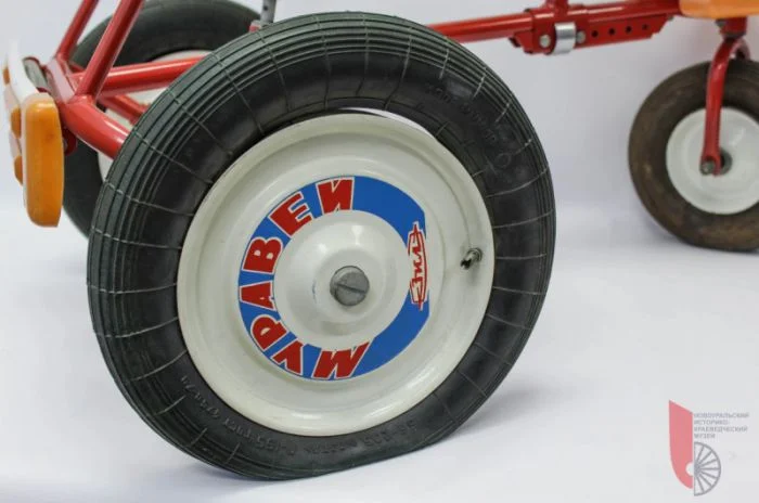 Но это все - просто "цветочки", настоящее удивление вызывает механизм управления всей этой конструкцией. Руль и заднее колесо связаны между собой тягой, которая расположена внутри рамы. Если "Муравей" едет прямо, то привод приходится на два передних колеса, стоит только повернуть руль, привод в этой стороне от колеса отключается - так ребенку будет легче поворачивать.