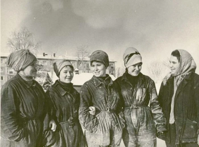13. Девушки-отделочницы из бригады Н. Акулинина, принимавшие участие в строительстве Московского проспекта. 1965 год. Автор: В. Мясников. Череповец.