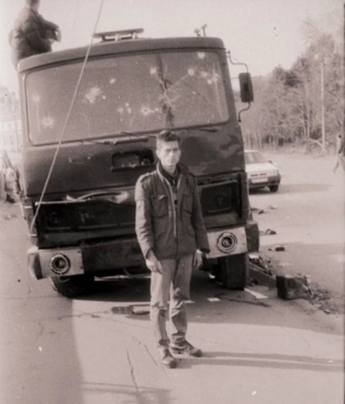 7. Расстрелянная на трассе фура. Россия, 1990-е годы.