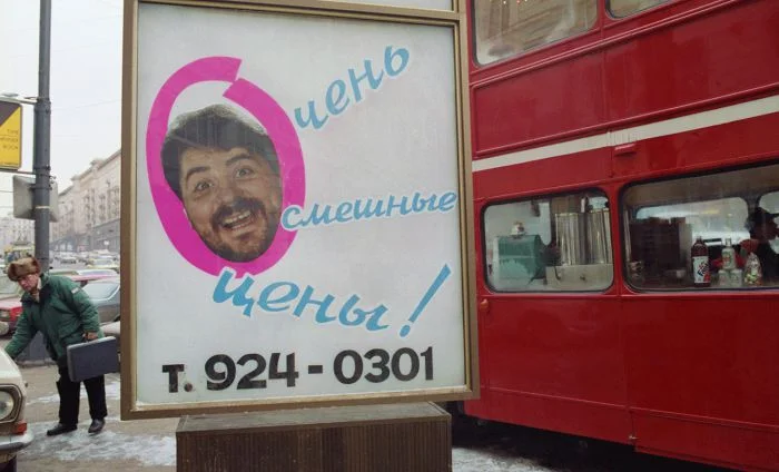 14. Рекламный стенд с Цекало от рекламного агентства «Премьер СВ» на Тверской улице в Москве, Январь 1994 года.