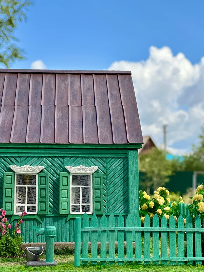 И пусть вас не смущает отличие в оттенках дома на фотографиях. Я снимала летом при ярком солнце, а на фото у нас пасмурная зима. Поставь макет в полутень, и цвета будут практически идентичными. Пруфы)