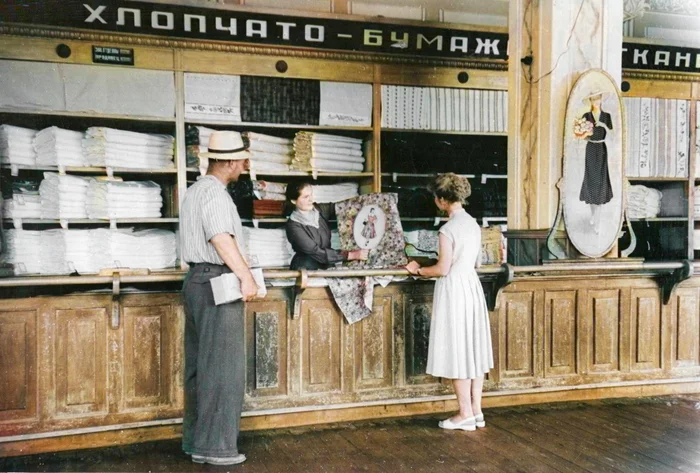 Шить в Советском Союзе умело большинство женщин и девушек, поэтому магазины ткани были практически в каждом городе.