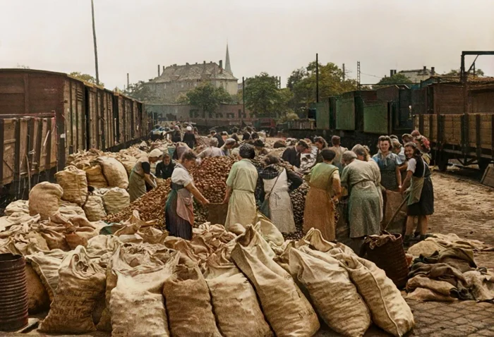 Жители Берлина бесплатно получают картошку от Советской военной администрации, Германия, май 1945 года.