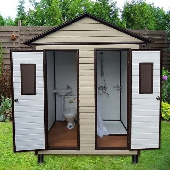 Готовые пластиковые кабинки — это бюджетный и удобный вариант. Они легкие, не требуют специальных навыков для установки и отличаются простой в уходе. Пластик устойчив к воздействию влаги и ультрафиолета, что делает его долговечным. Для придания стилевого единства с дачным участком, можно украсить кабинку растениями или декоративной пленкой.