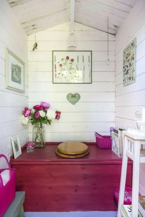 Еще один интересный и простой вариант — туалет в форме скворечника. Для него потребуется немного больше усилий, но результат будет впечатляющим. Основной материал — дерево, однако можно добавить декоративные элементы, такие как резные детали или раскрашенные фасады. Такой туалет станет не только функциональным объектом, но и стильным дополнением ландшафта.