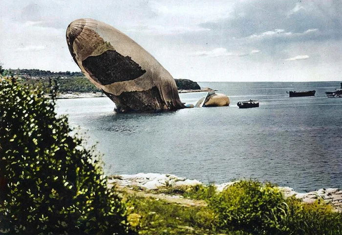 Тонущий дирижабль итальянских военно-морских сил, 1915 год.