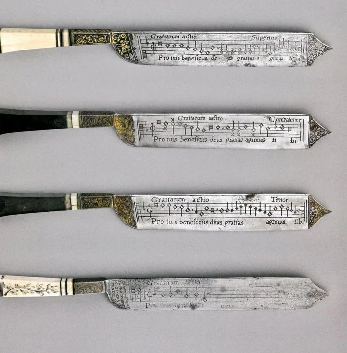 4. На этих редких ножах, датируемых XVI веком, выгравированы музыкальные партитуры с текстами молитв до и после еды