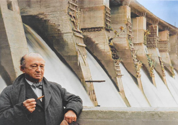 Полковник Хью Купер из инженерного корпуса армии США, позирует на фоне плотины Днепро-ГЭСа, которую он помогал строить в качестве приглашенного советским правительством главного инженера-консультанта. 1931 год.