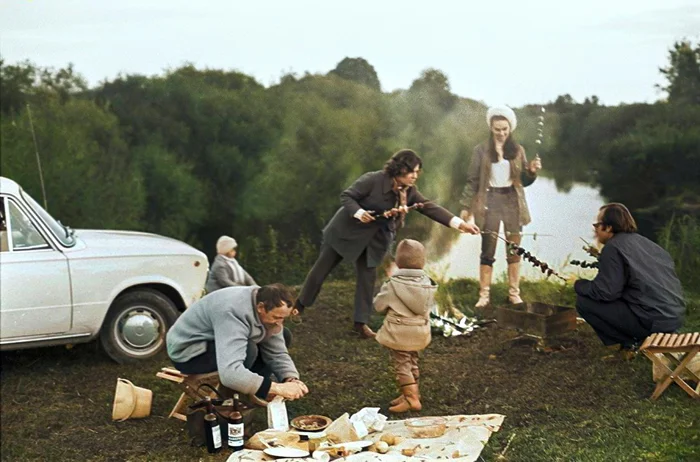 Клайпеда, Литовская Советская Социалистическая Республика. Архитектор Петрас Лапе с семьей во время пикника, 1972 год.