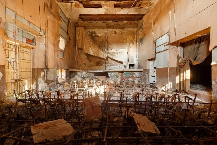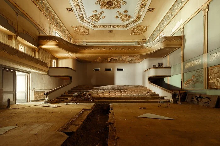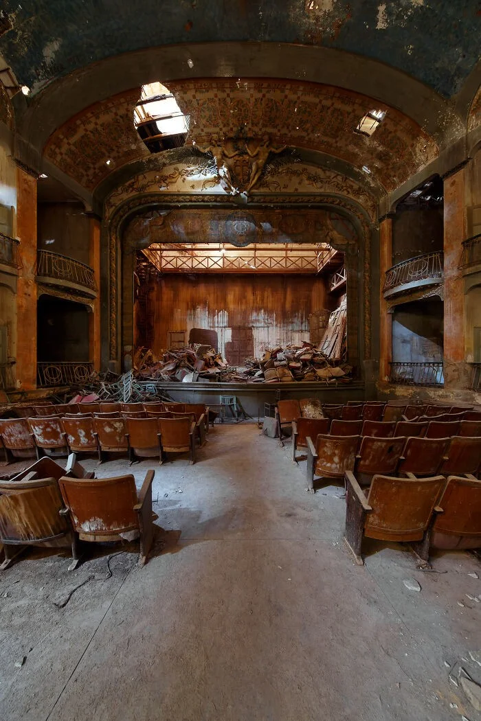 Путешествуя по миру, от забытых уголков шумных городов до отдаленных и безлюдных мест, Димитрий бережно коллекционирует эти заброшенные культурные реликвии. Он надеется, что его снимки позволят зрителям ощутить тишину и ностальгию, царящие в этих местах, — дань искусству и воспоминаниям прошлого. Добро пожаловать в «Эхо забытых театров».