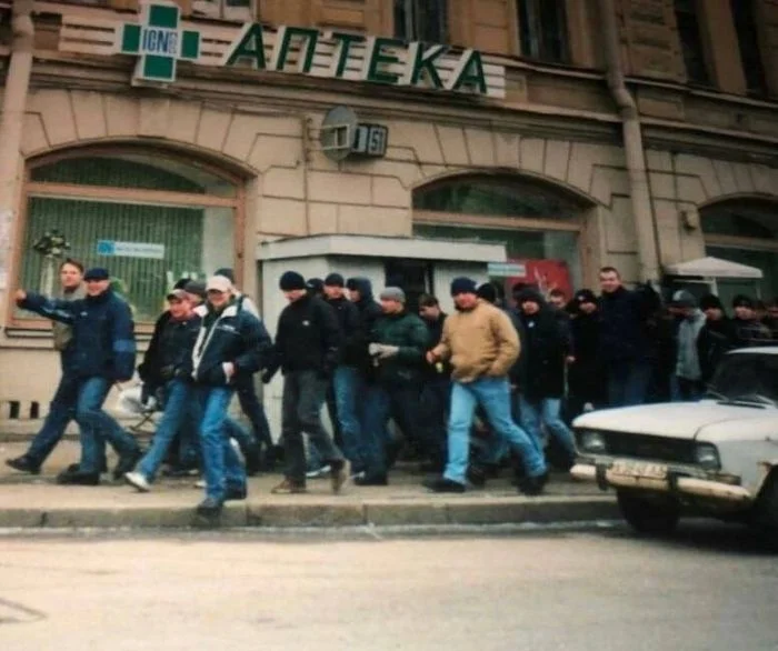 12. Фанаты «Зенита» идут на «дружескую встречу» с фанатами «Динамо» Санкт-Петербург, Петроградский район, 2000 год