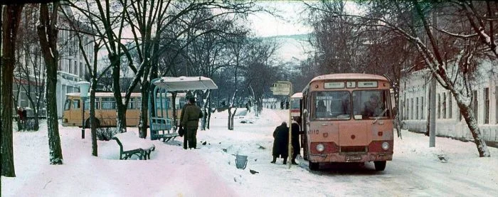 5. В Крыму и зима случается, если вы не знали. Центральная остановка автобусов в Феодосии на улице Розы Люксембург (ныне это Адмиральский бульвар).