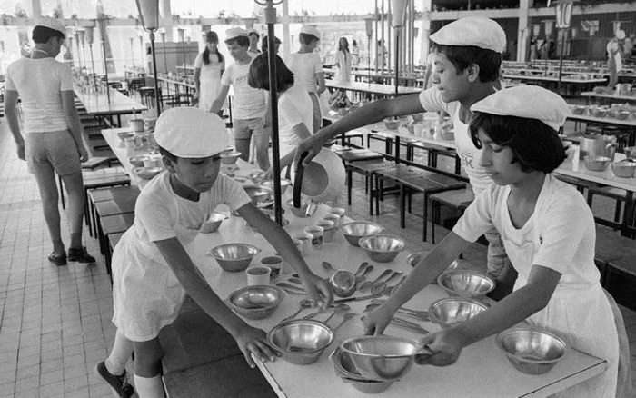 9. Школьники из Афганистана на дежурстве в столовой "Круг" международного пионерского лагеря «Артек».