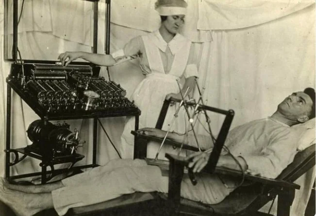 12. Кресло Bergonic Chair для проведения электротерапии с целью психологического воздействия при психоневрозах, эпоха Первой мировой войны