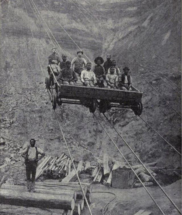11. Шахтеры спускаются в алмазный рудник Кимберли в Южной Африке, 1880-е годы