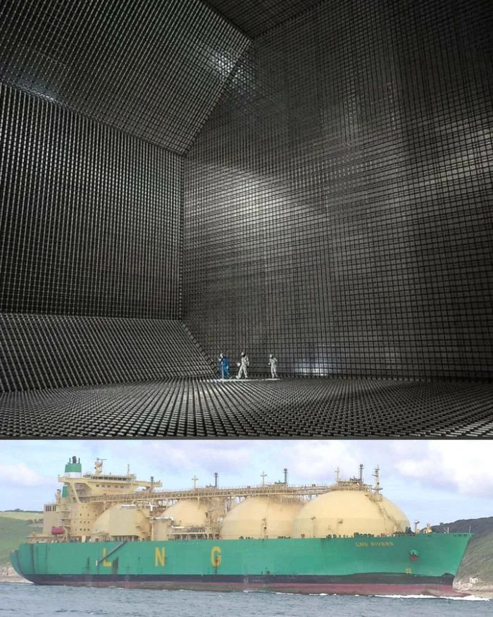 2. Члены экипажа стоят внутри грузового танка танкера СПГ